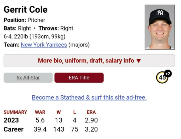 양키스 콜 사이영상 2023, "AL 게릿 콜, NL 스넬"