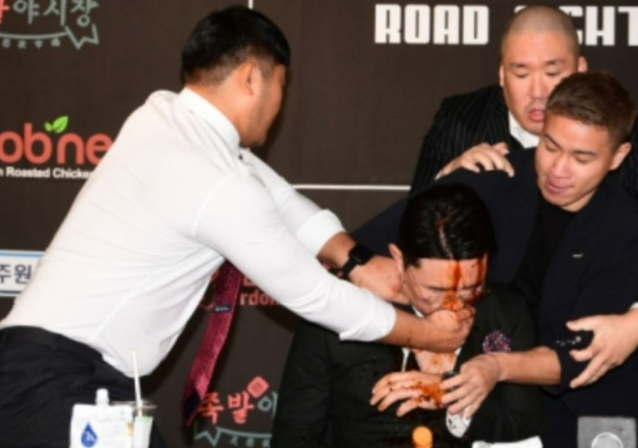 윤형빈 간장테러 : 로드FC 복귀전 기자회견도중 일본의 소유 니키에게 간장 테러 한vs일 전 참교육?